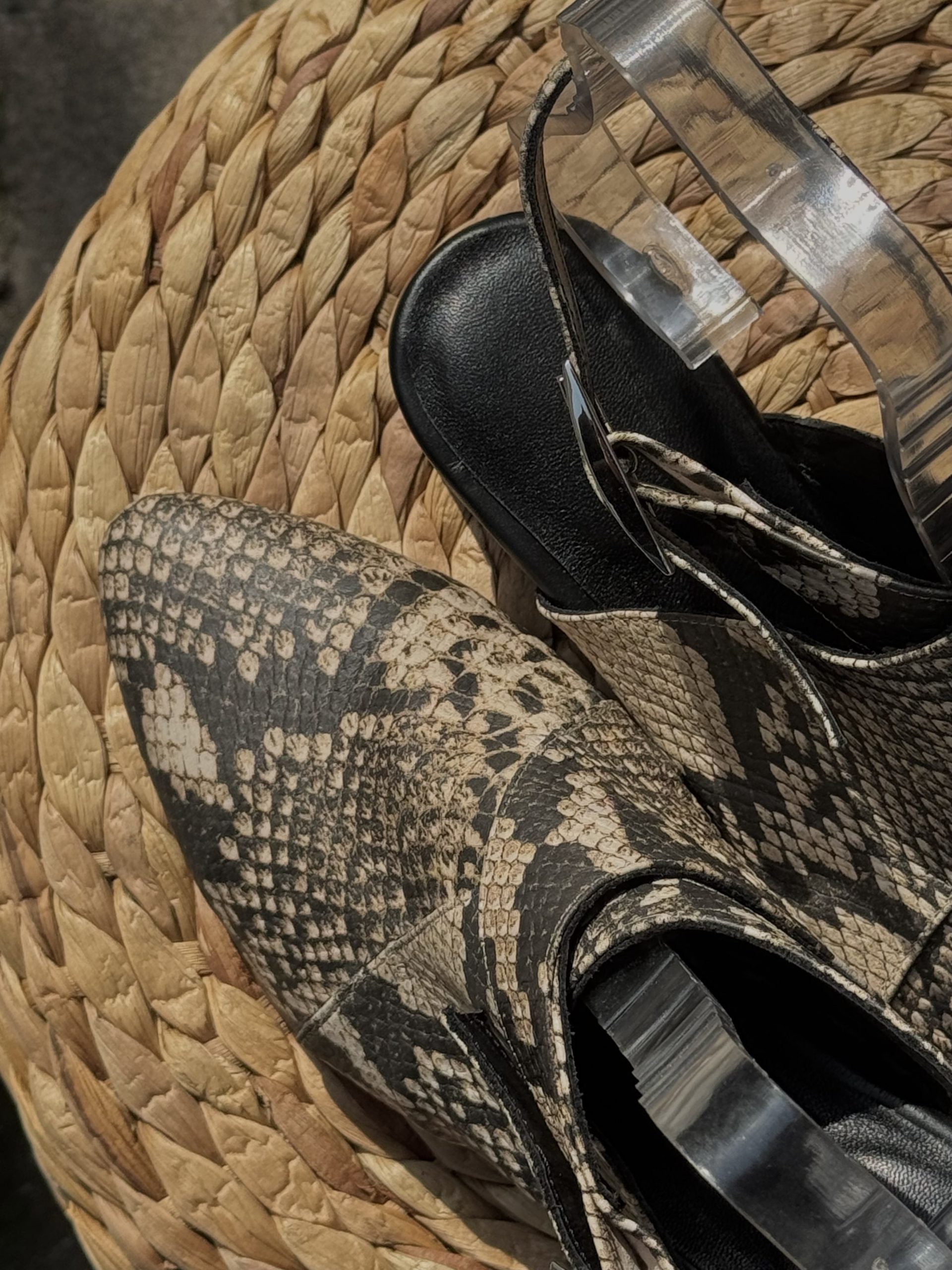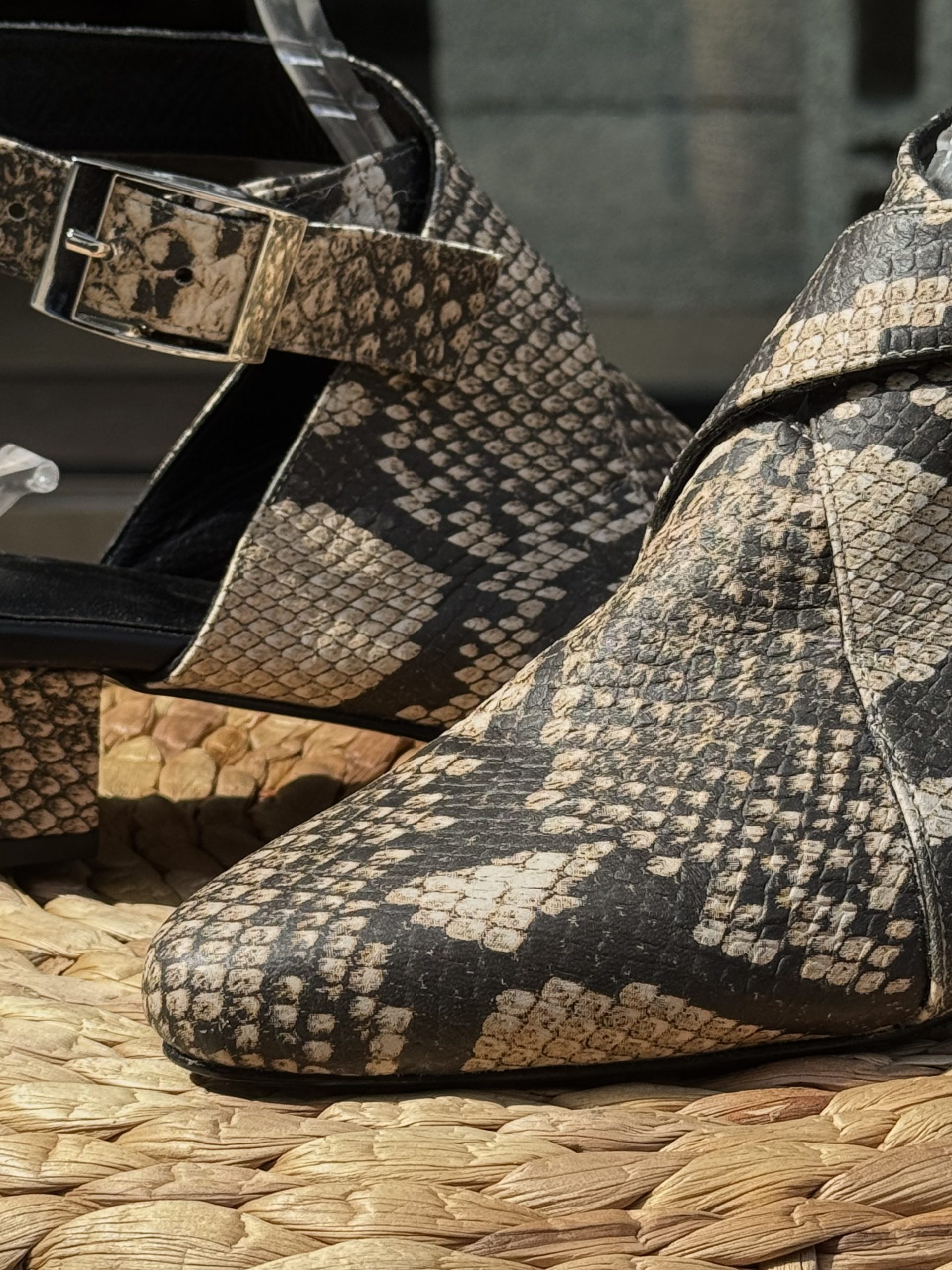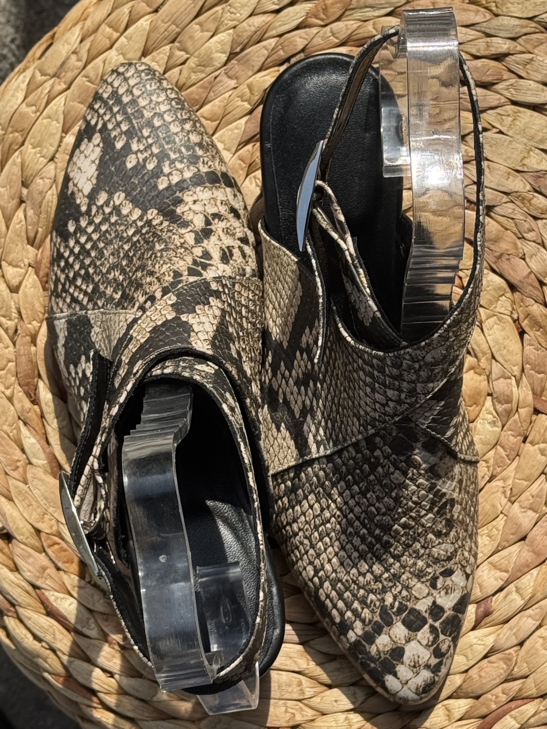 Ιδιαίτερο snake print mules ,ιδανικό για να αναβαθμίσεις κάθε σου εμφάνιση.