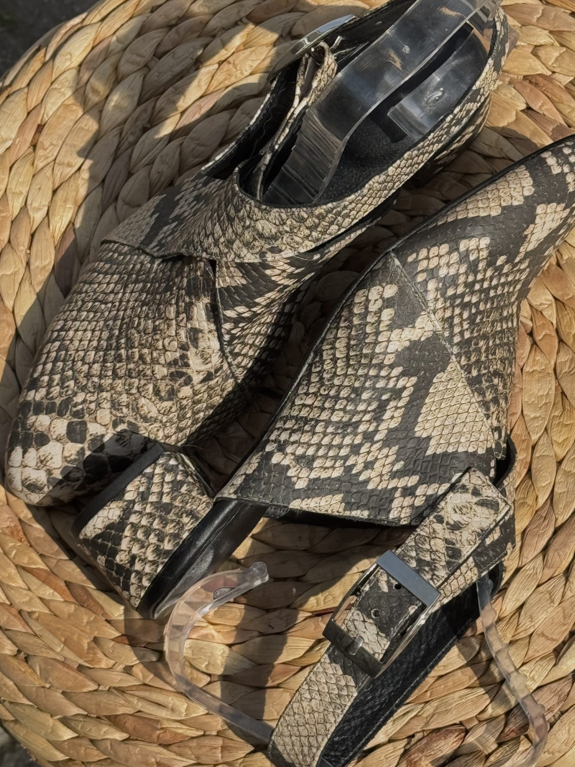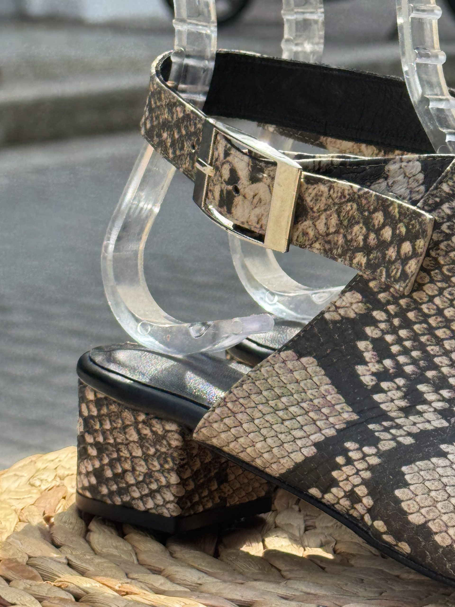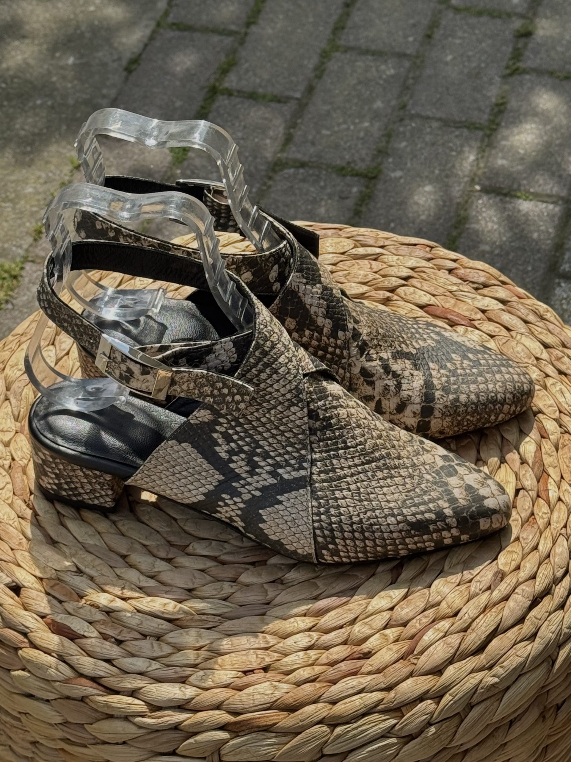 Ιδιαίτερο snake print mules ,ιδανικό για να αναβαθμίσεις κάθε σου εμφάνιση.